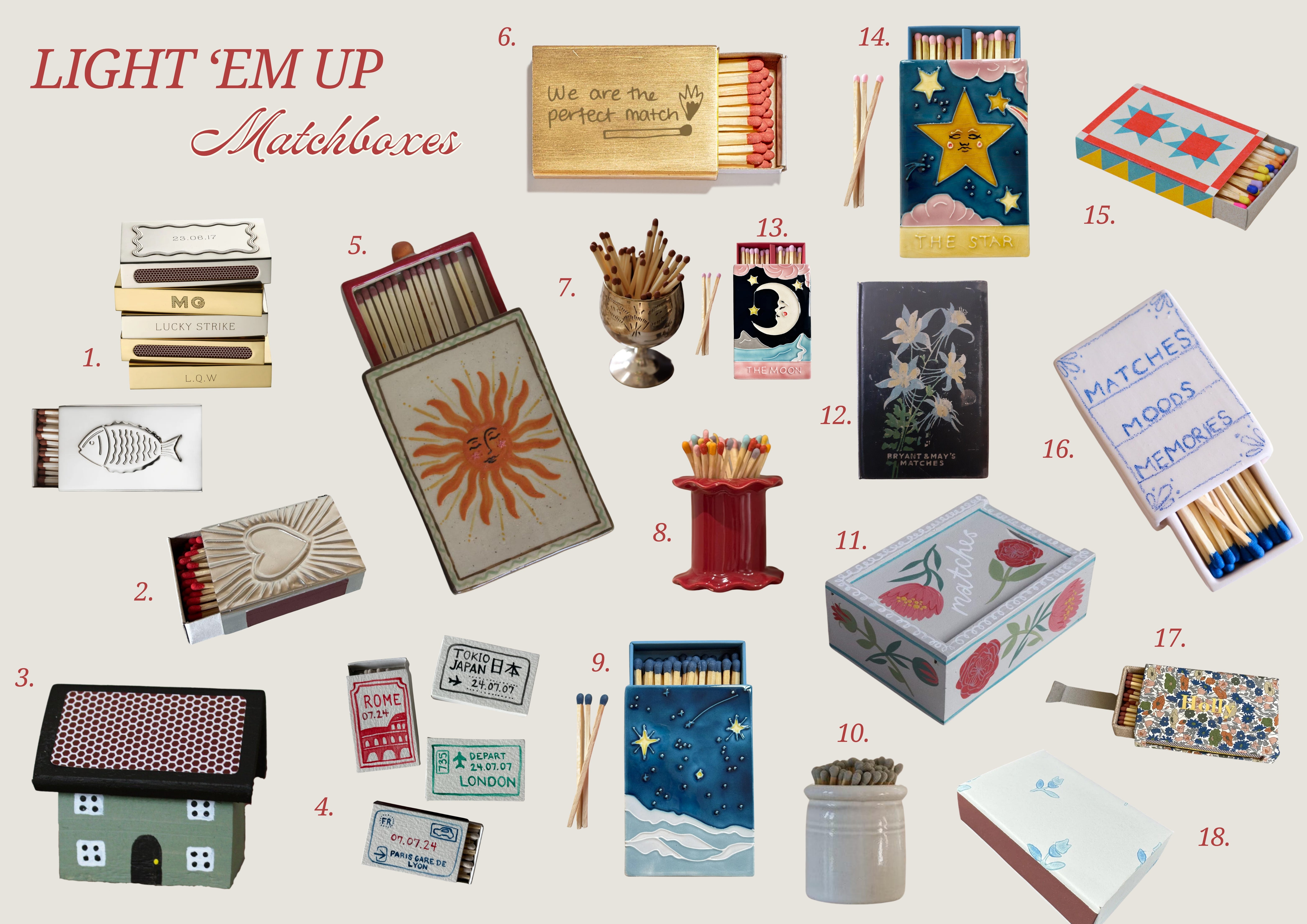 If you also have a matchbox obsession, then here are some pretty and practical ways to display them around the place. These aren’t all strictly matchboxes, but all of the holders have a stricker on them, so I think they count.